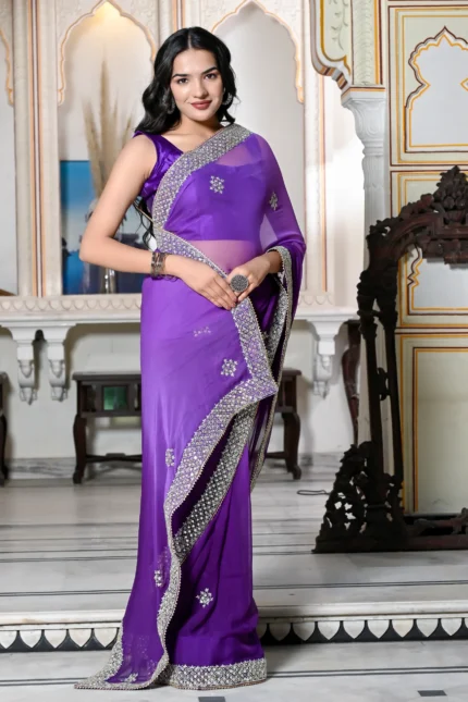 Teal Georgette Embroidered Sequins Saree After Six Wear