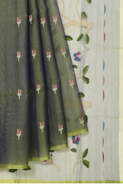 Dark Purple Kanchipuram Silk Saree with Floral Jaal Design