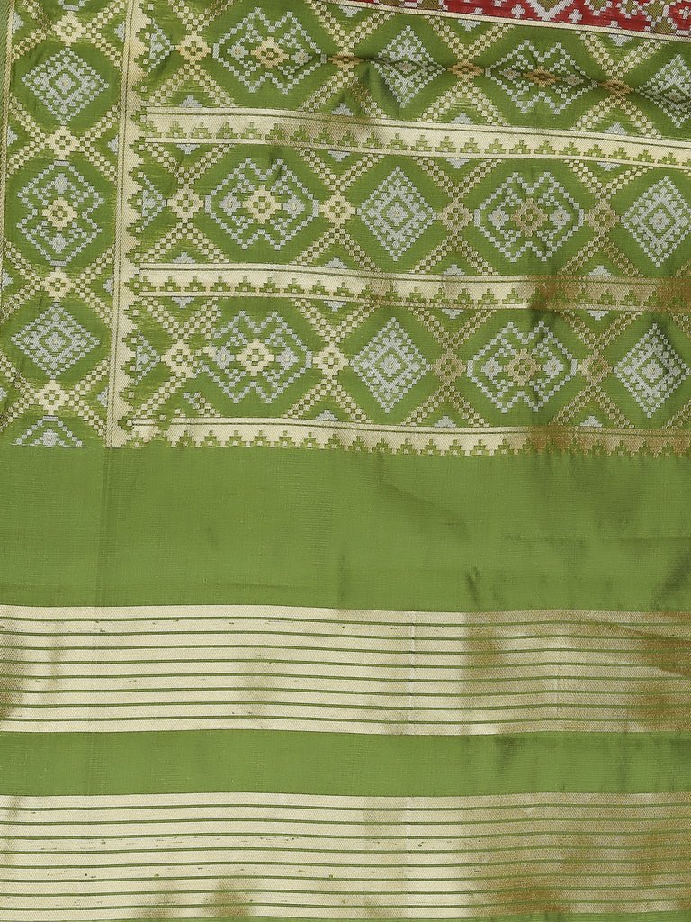 Add a touch of elegance to your wardrobe with this exquisite piece of beautiful Banarasi Silk Dupatta. Swathed with elegant Patola style weaving all over, this classic stunner is a must in your ethnic collection.