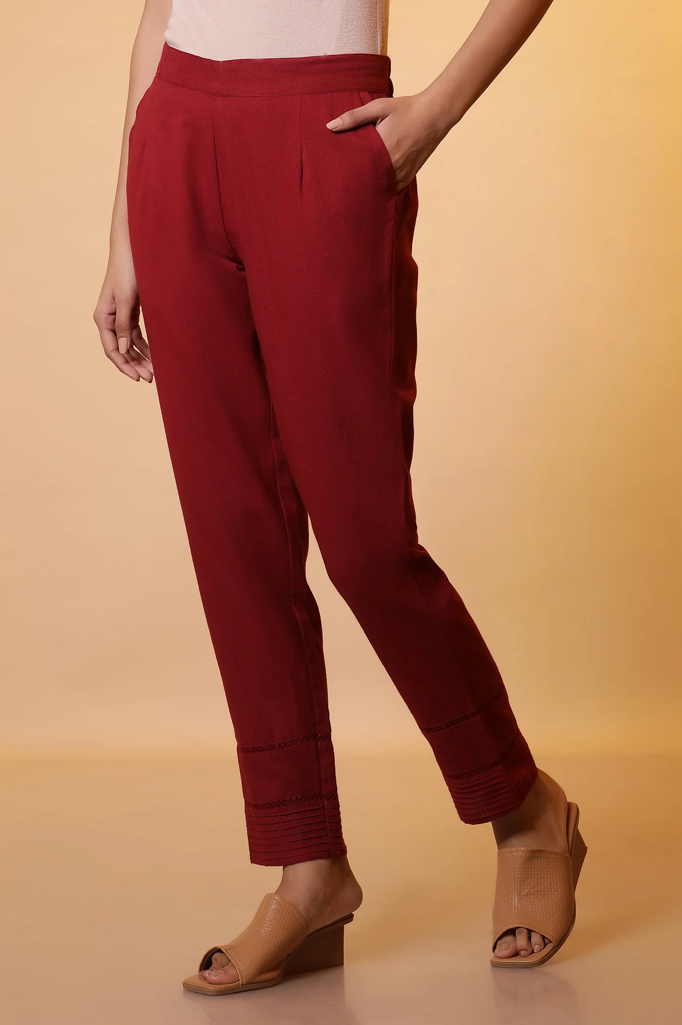 Maroon Lace Insert Pintuck Trousers
