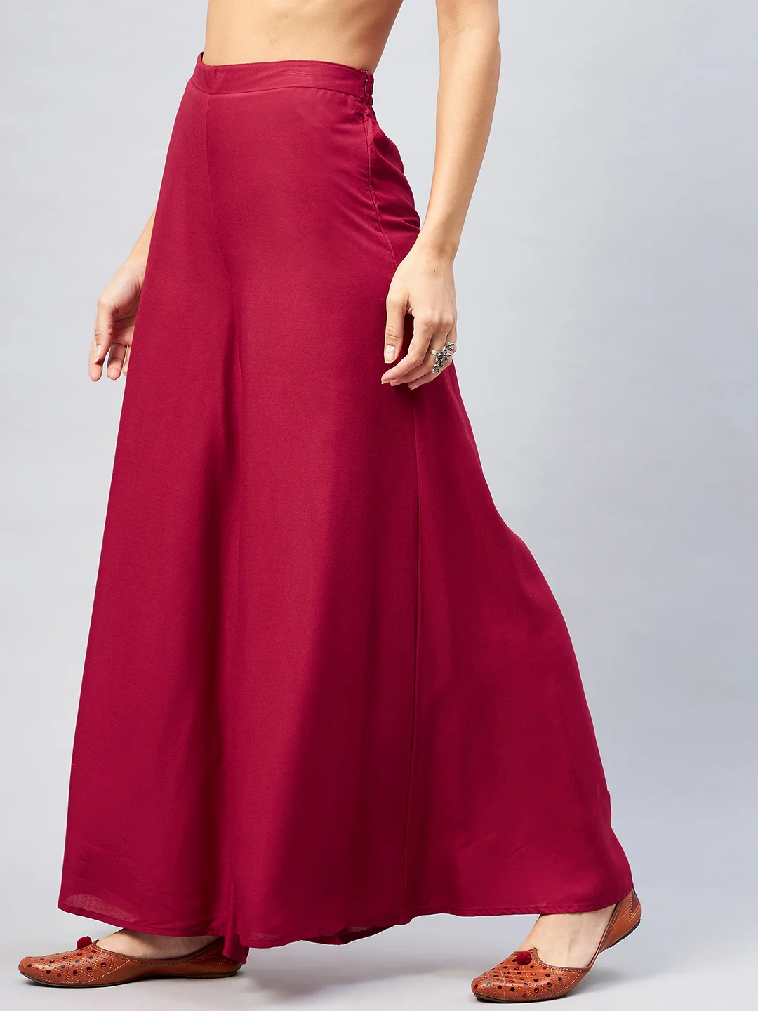 Viscose Rayon Solid Maroon Handloom Palazzo