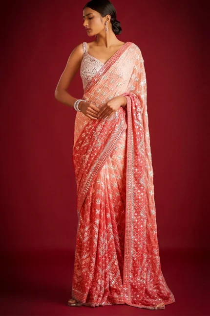 Specifications Art Style:Sequins | Hand Work | Zari Event: Ganesh Chaturthi | Krishna Jayanthi | Bhai Duj | Durga Pooja | Pongal | Diwali | Eid Fabric: Faux Georgette Neck Style: Classic Neck Style Sleeve Length: Half Sleeve Style: Dressy Size: 32-42 Original price was: ₹17,000.00.₹9,000.00Current price is: ₹9,000.00. -