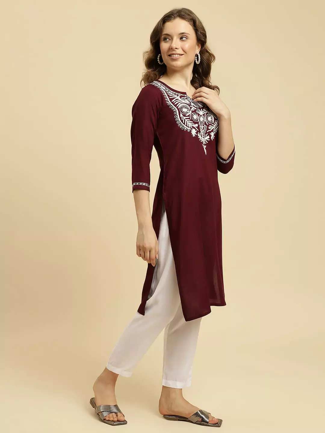Look ethereal in this Aari work Kurti, crafted with Silk Thread.